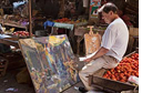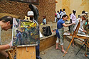 During the 16-day festival, artists moved around the island daily, sometimes setting up their easels in quirky places—rooftops, alleyways, against chicken coops and displays of tomatoes and on sailing dhows—to capture on canvas the island life they experienced. More than 220 paintings were completed over the course of the festival—an incredible number of works. They were displayed in Baitl Aman Hotel in Shela village in a public exhibition that continued for the duration of the festival.