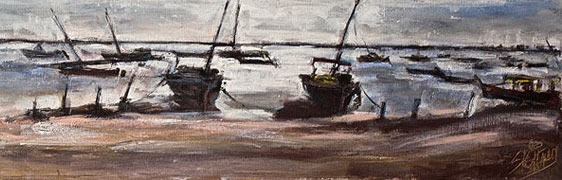 What he likes about the Lamu Painters Festival is working in public and on site. “I am used to sketching, then taking the sketches back to my studio to work on them in oils,” he says. “That’s why working in the open air and painting in public is a good experience. You transform the moment into artwork there and then.” In the open, artists do interact with the public, often a group of people stand by watching and making comments, visibly moved by colours creating forms that are recognizable. Githui enjoys boat rides and visiting villages like Maweni and Matondoni, modes of traveling and places so different from his usual haunts. “When I visit Lamu,” he says, “I am always surprised by the new ideas I have later and how these ideas come out in my work.”
