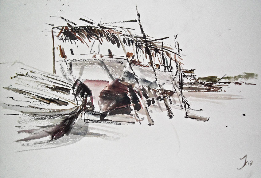 “I have it worked out,” he remarked as I cautioned him of the donkeys approaching his easel. “If it is a donkey carrying loads on his sides, I have to move my easel. But if it is simply carrying a load on top, I am okay. There is enough space for him to pass.”The calculations of space, time and oncoming donkeys as well as easel craftsmanship are an indication of his interests. Jacob is a scientist and works as a bio-physicist, at least part of the time. “Yes, I like to figure things out and I am methodical,” Jacob tells me. When he is not painting, he works part time at a university research centre in Amsterdam. His part time status is a choice and it has enabled him to pursue his art interests.