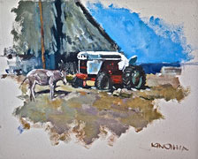 Kinuthia enjoyed visiting Matondoni, one of the day trips scheduled by the festival organisers. “That trip really stands out,” he tells me. He describes the way the group of artists were received by the villagers and given cut mangoes and madafu (immature coconuts with succulent juice) to drink. “The villagers were incredibly welcoming” he remembers. “It was a powerful experience for me.” He describes how his guide led him around the village seeking out a scene that caught his interest to paint. When he finally decided on the place, it happened that he had chosen the house and family of his guide. Both were surprised and pleased at the coincidence. Kinuthia also remembers fondly the trip to a farm on the outskirts of Lamu Town. “I remember painting a granary but also I remember the fantastic food we were served sitting on mats under the mango trees.” Afterwards, the artists were given a demonstration of climbing coconut trees without the use of ancillary support. They watched in awe. “He was up that tree in 10 seconds!” Kinuthia exclaims unbelievingly.