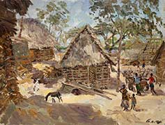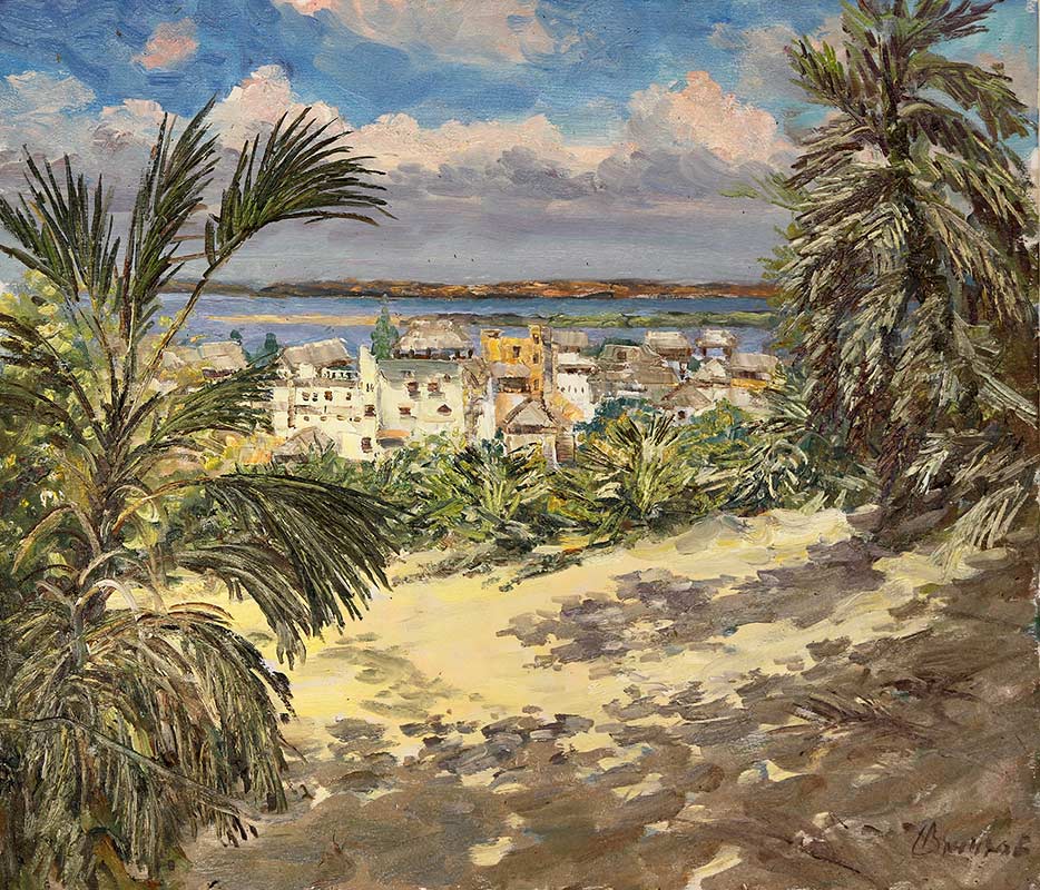 Dressed in a flamboyant shirt, ponytail peeking out of his baseball cap, Valentin became a regular sight on his morning commute to Lamu Town. Encumbered with painting paraphernalia, he stoically trudged the long trek across the baking sands. His lack of English and our deficiency in speaking Russian made for non-existent conversation, but as the weeks passed and he became more confident, he managed to make break down the language barrier. A ‘good morning’ or ‘good evening’ was added to his cheery wave. He certainly managed to express himself through his painting. Clearly influenced by the Russian plein air movement, there was a timeless quality to his art.