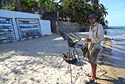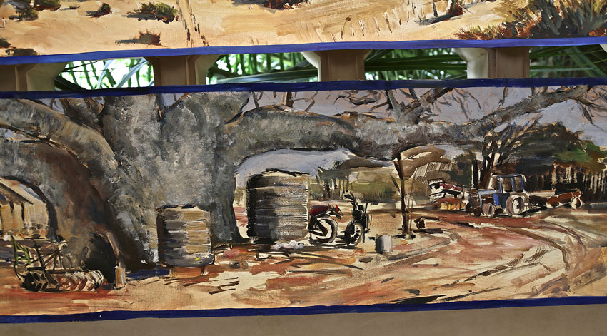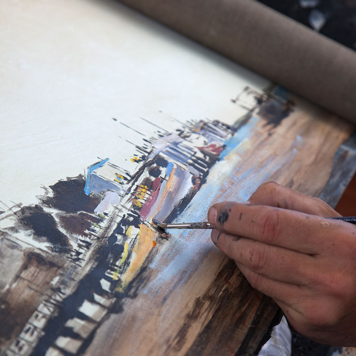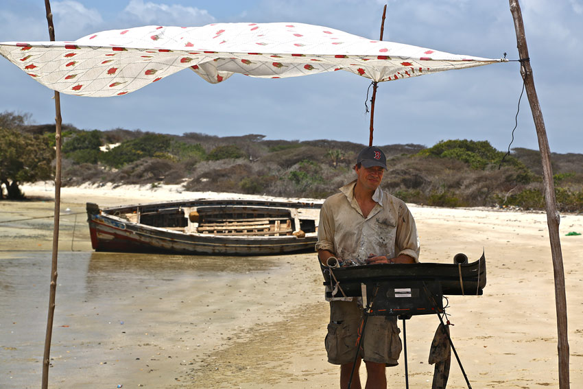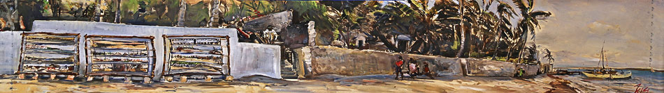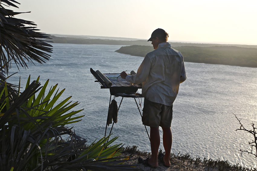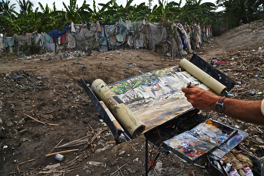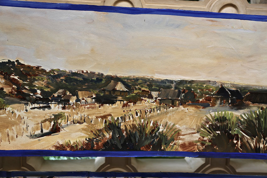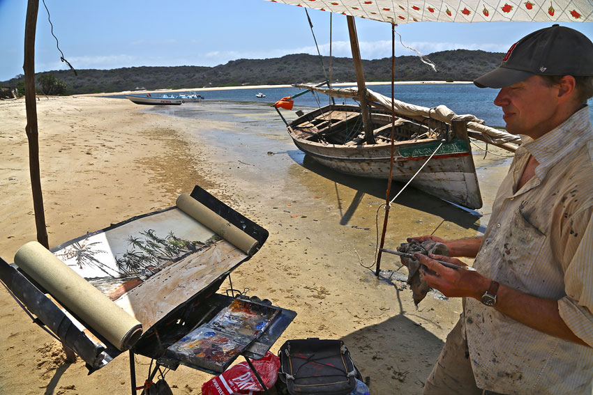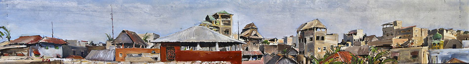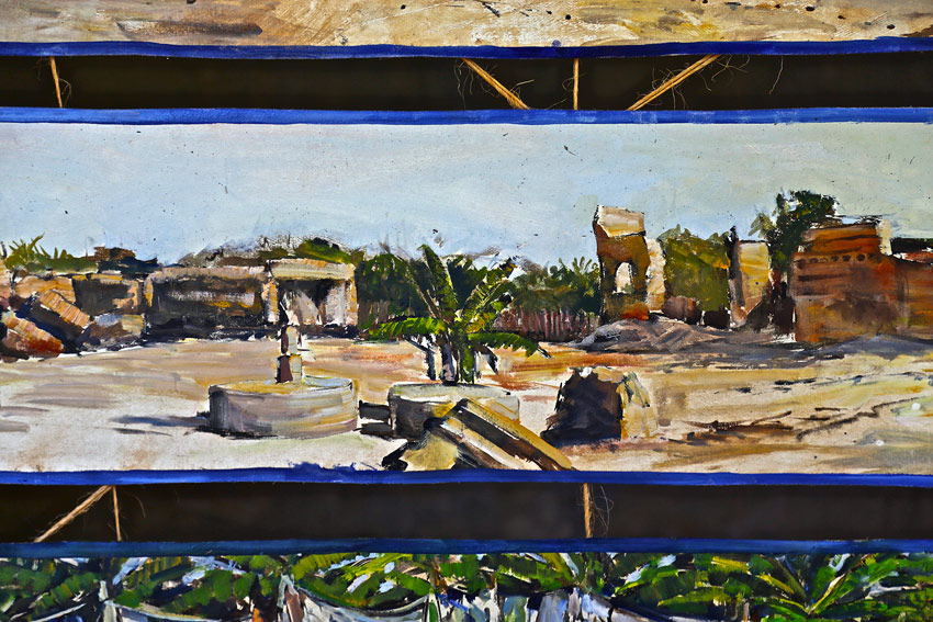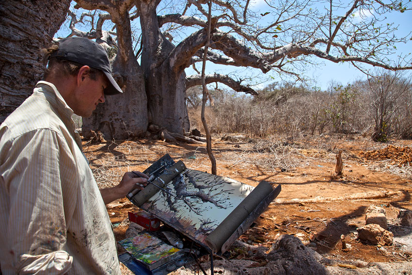 Jacob Kerssemakers, born in 1968, prefers to work ‚en plein air’, painting and drawing the vastness of the landscape as panoramas in long formats of more than two until five meters length. He captures the width of the horizon until 360° in a roll of canvas using a self-developed roller board. While painting mirages are changing colours. Finally the contemplator will find different aspects at different times in the same landscape.