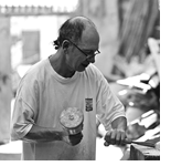 Interested in the human figure, and generally working with models, he creates sculptures from stone, plaster or wood. Very often his pieces are larger-than-life. He also does sketches and lino prints. His works have been shown in various exhibitions in Germany, France, Czech Republic, Switzerland and the United States. Some years ago he discovered glass as a new material for his paintings and created large windows for some public buildings.