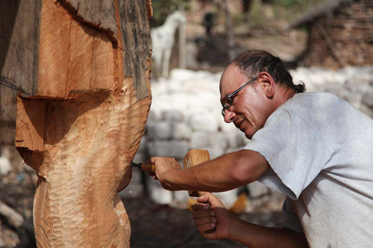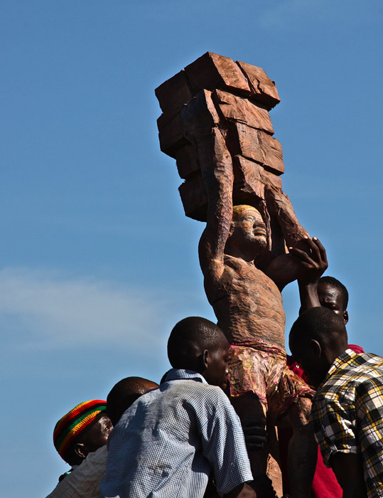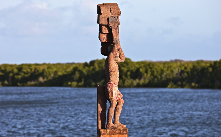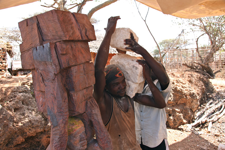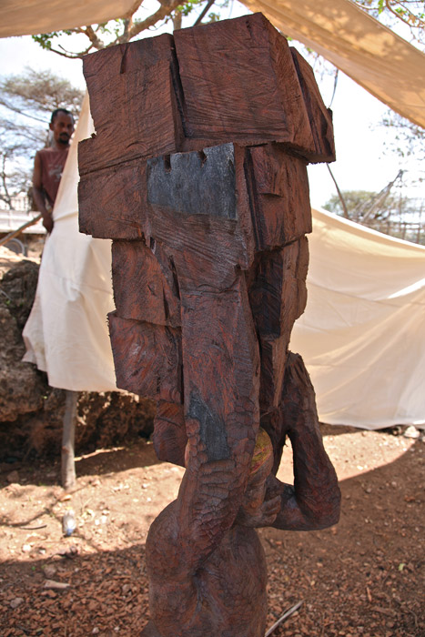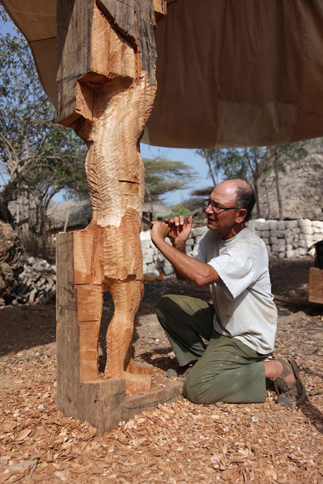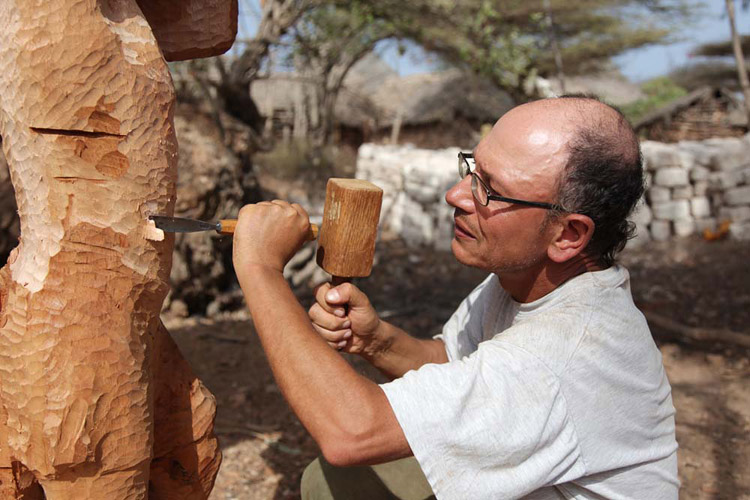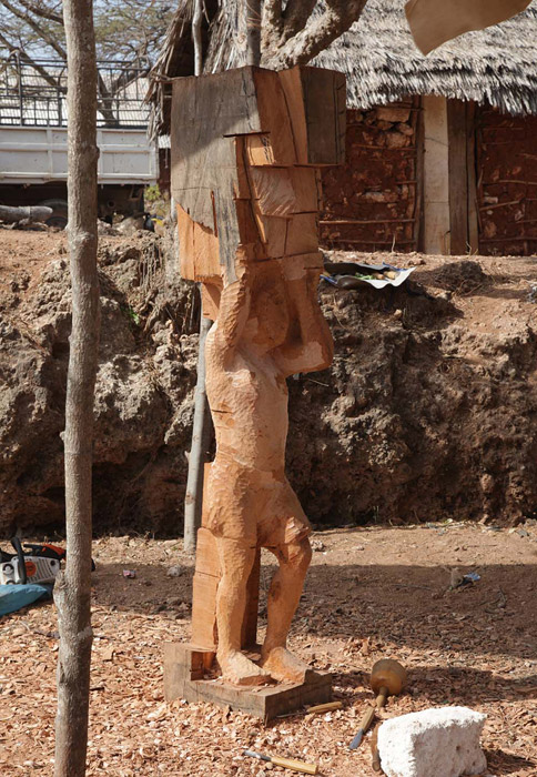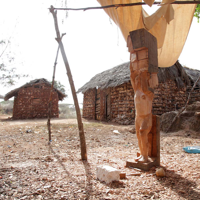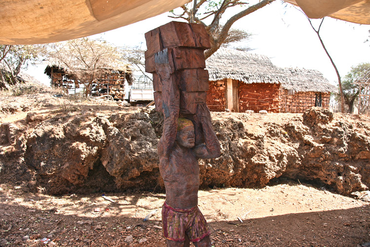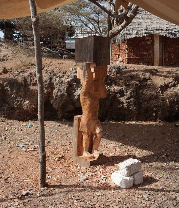 During his first visit to Lamu in February 2011, Joachim was inspired by the hard labour of local quarry workers to create a sculptural figure called ‘Shee Bwana’. Returning to Shela in October 2011 Joachim will continue his work, creating more wooden sculptures that draw from everyday life in Lamu.