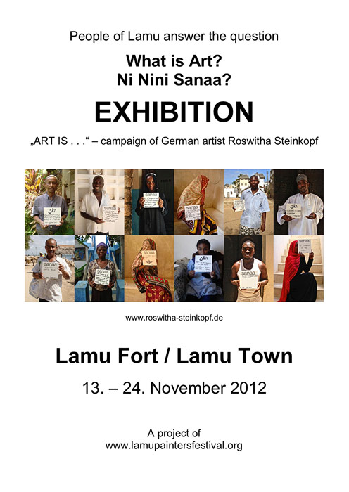 “art is …” is an international, interactive art campaign in which the German artist Roswitha Steinkopf invites people of diffrent cultural backgrounds to reflect about their personal thoughts and feeling about art. They are then asked to write this down on white boards.