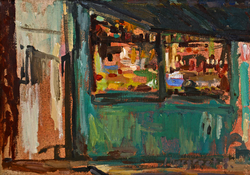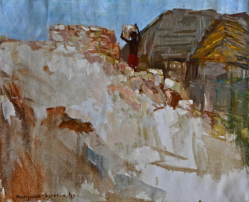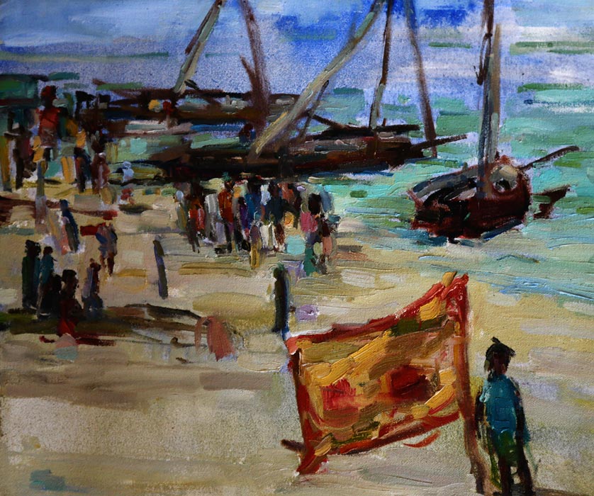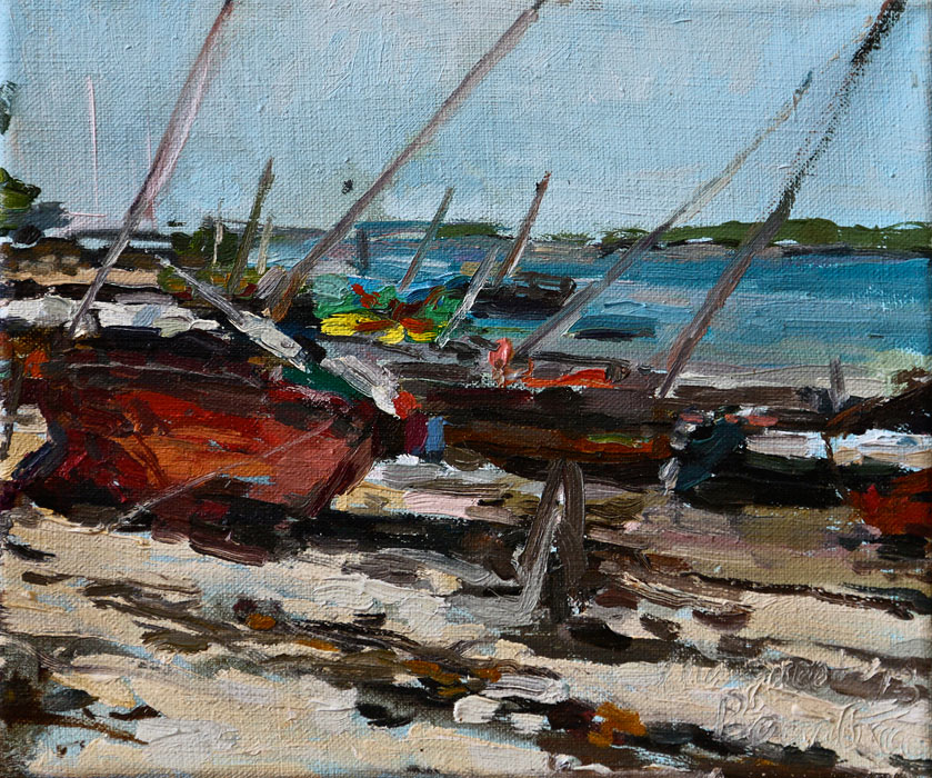 Margreet Boonstra had a difficult decision to make. “Why in heaven’s name should I go to Africa to paint?” she asked herself. Months before the Lamu Painters Festival she was vacillating: “once a week I decided I would not go.” Her indecision was based on news reports about Somalia and memories of the national elections in Kenya that lead to violence in 2008. Besides these political roadblocks to traveling, Margreet also questioned how she would be able to translate in paint on canvas the new sights she would experience and the absolute foreign-ness of Lamu in comparison to her familiar life in the Netherlands. Yet, in spite of these misgivings she came and, according to her, “immediately on landing in Lamu, I felt peaceful.”