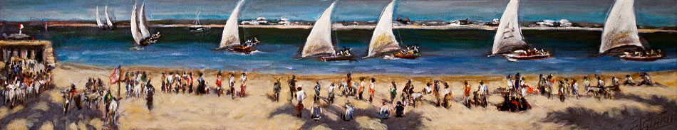 What he likes about the Lamu Painters Festival is working in public and on site. “I am used to sketching, then taking the sketches back to my studio to work on them in oils,” he says. “That’s why working in the open air and painting in public is a good experience. You transform the moment into artwork there and then.” In the open, artists do interact with the public, often a group of people stand by watching and making comments, visibly moved by colours creating forms that are recognizable. Githui enjoys boat rides and visiting villages like Maweni and Matondoni, modes of traveling and places so different from his usual haunts. “When I visit Lamu,” he says, “I am always surprised by the new ideas I have later and how these ideas come out in my work.”